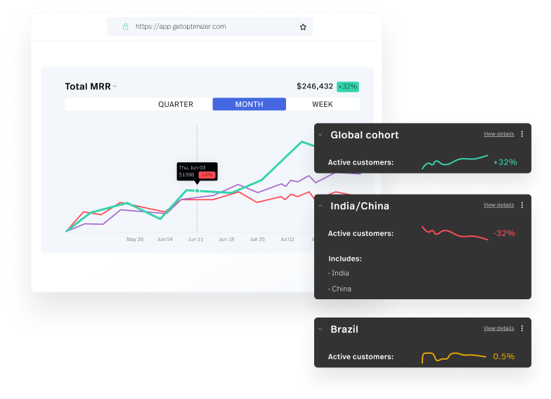 Measure performance for each geography through built-in reporting across MRR, ARR, and churn.