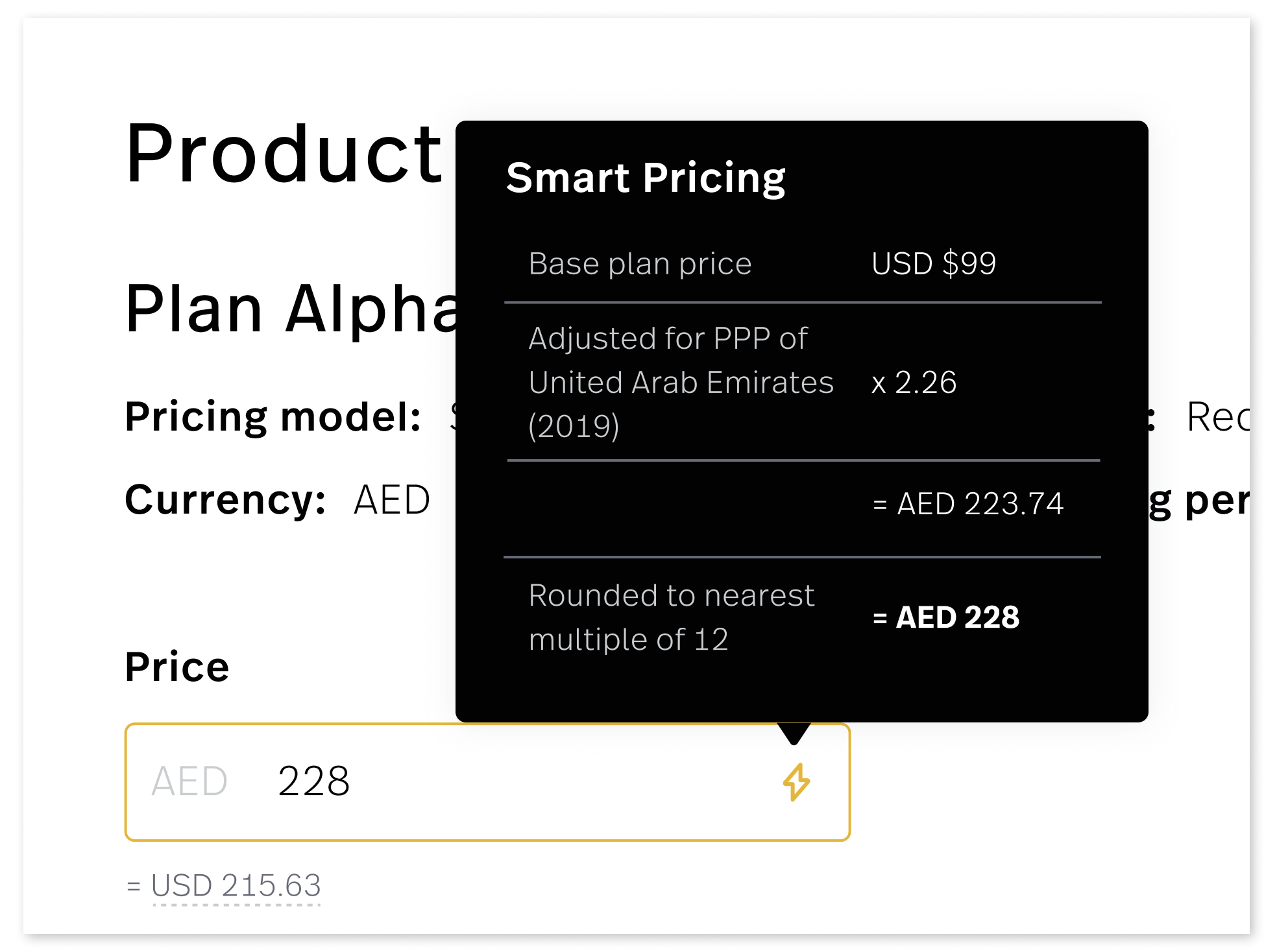 Optimizer shows Purchase Power Parity (PPP), currency conversions, and other heuristics to suggest localized pricing.